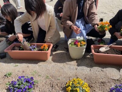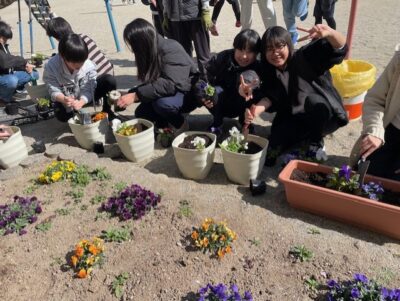 今日は、昼休みを利用して、一人ひとりがプランターにていねいに植えていました。