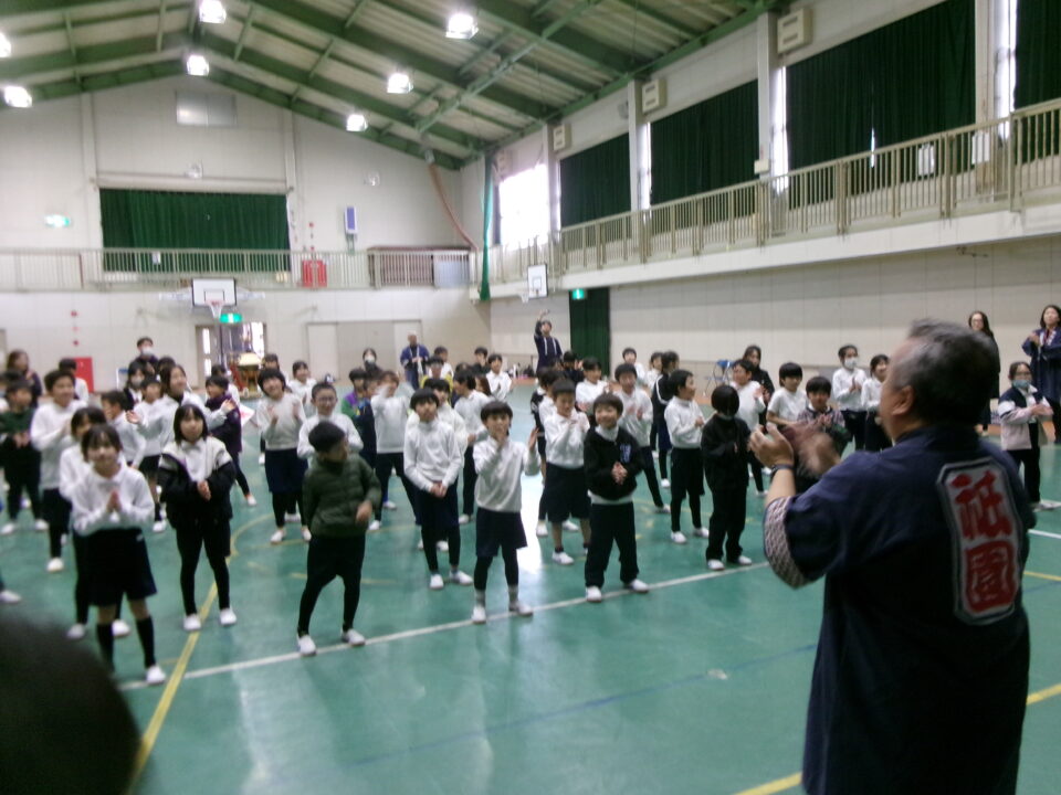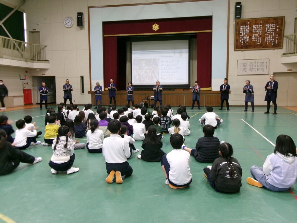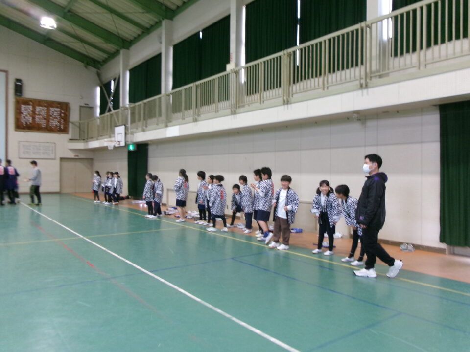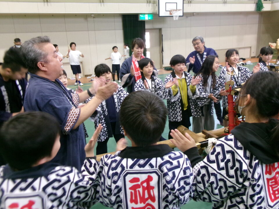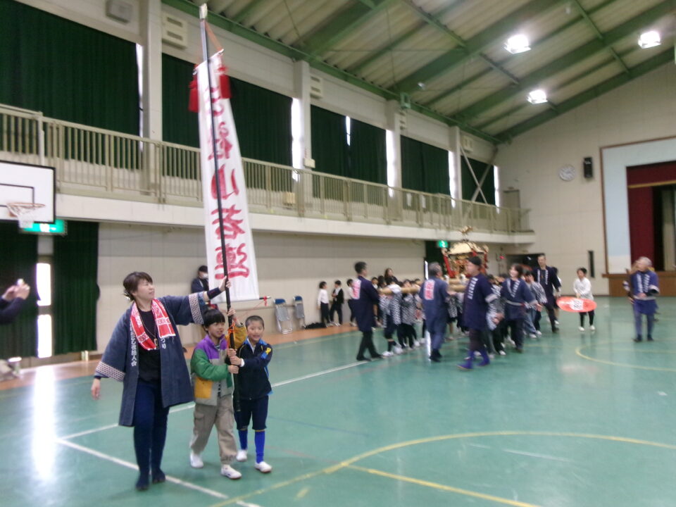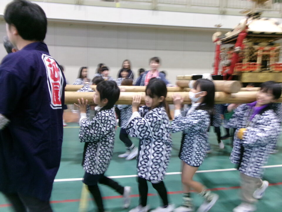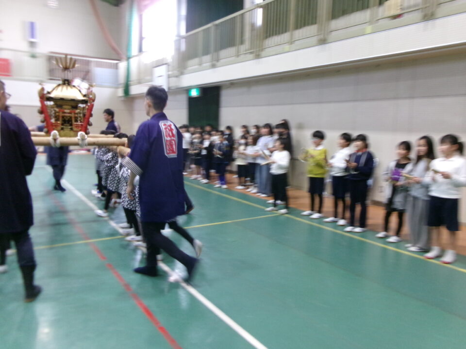 三社みこし世話人会の皆さんが、小学4年生~中学生までがかつげる小若みこしを持ってきていただき、体験をさせていただきました。