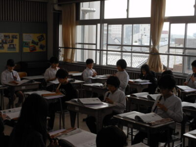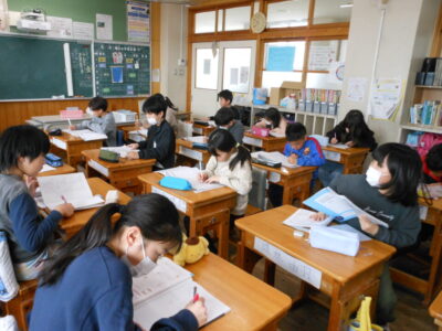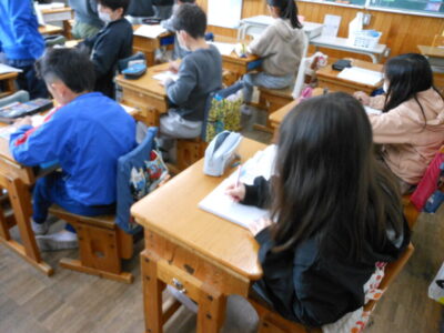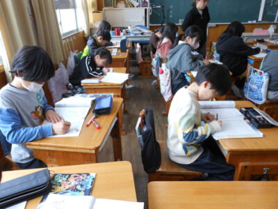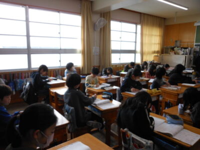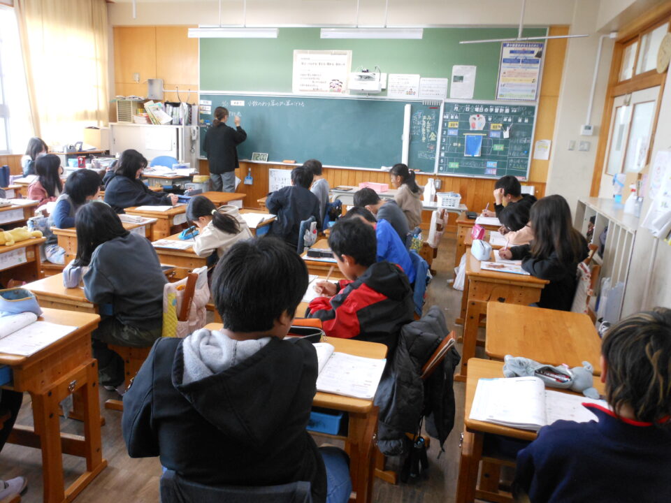 今日、6年生は卒業旅行。1年生から5年生は学習を頑張っています。今日は、4年生の学習を紹介します。