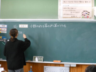 算数では、「小数のわり算の筆算」の学習をしました。たくさんの問題を筆算で解きましたが、とても前向きに取り組んでいました。どの子もできる喜びを感じているようでした。