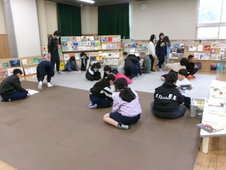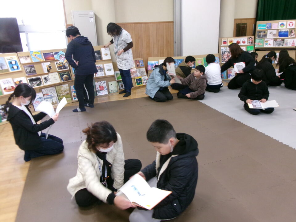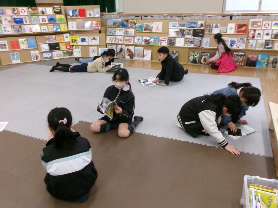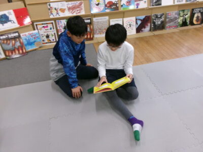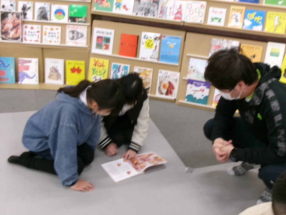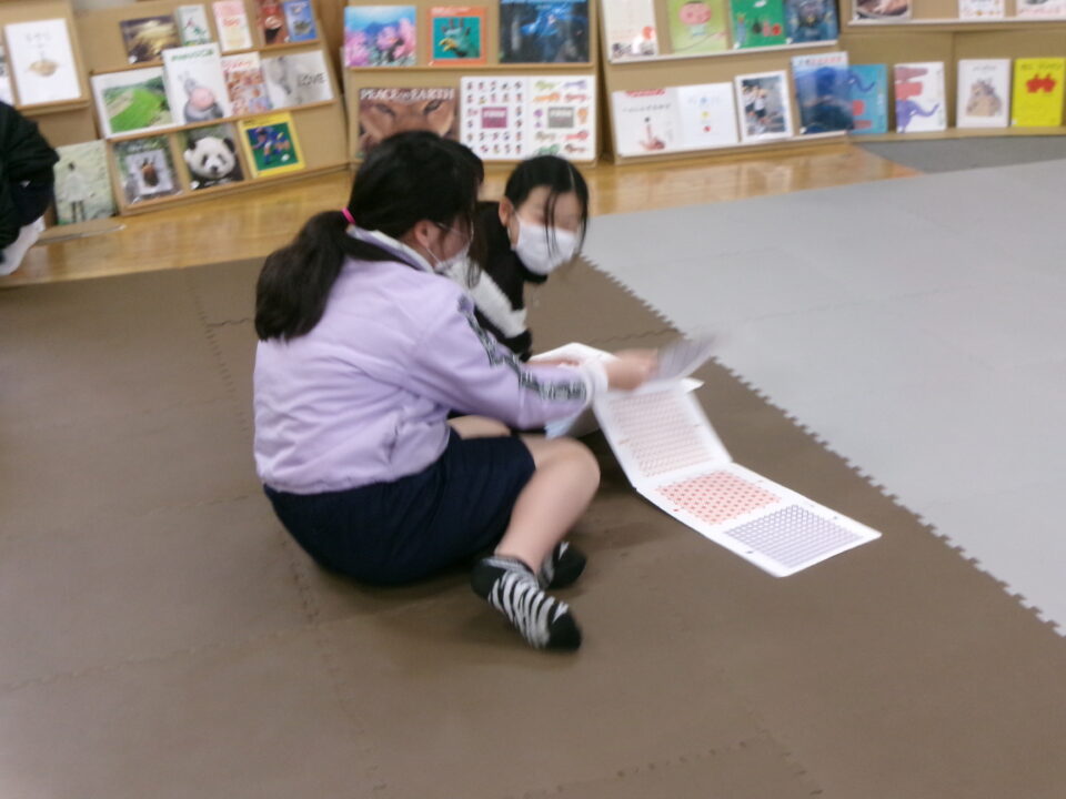 ひとり読書どくしょとはちがい、みんなでんでもい『ほんのひろば』ですので、あちらこちらからどもたちのたのしむこえがあふれていました。