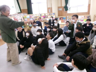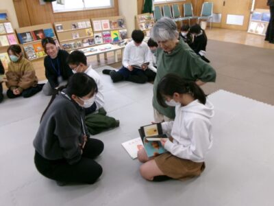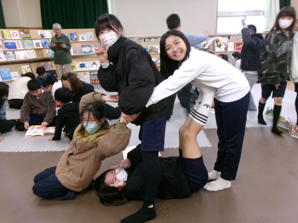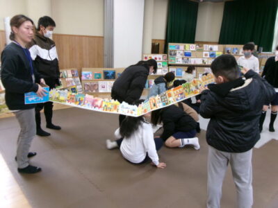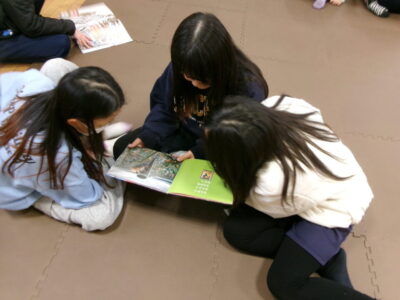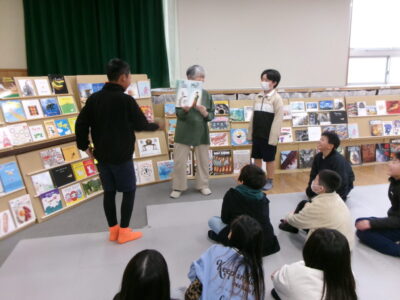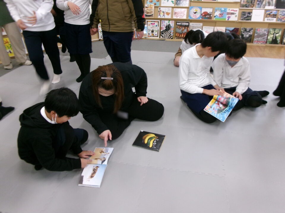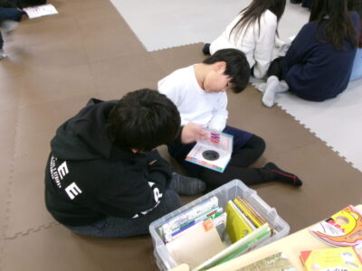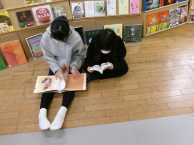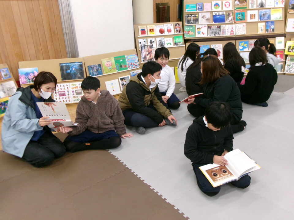 ひとり読書どくしょとはちがい、みんなでんでもい『ほんのひろば』ですので、あちらこちらからどもたちのたのしむこえがあふれていました。