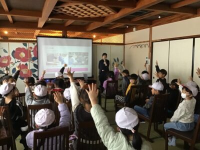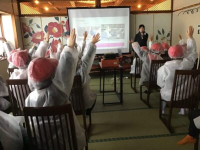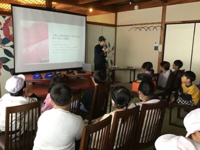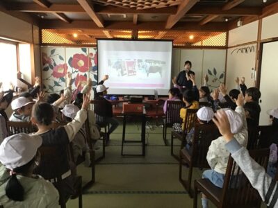 2年生は、生活科で1年生の時に松阪牛肥育農家の森本さんにお越しいただき、育てている牛さんはおいしい松阪肉になることを教えてもらいました。