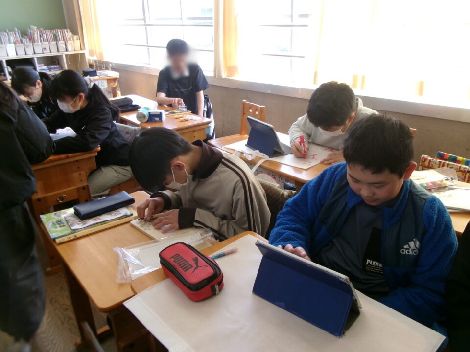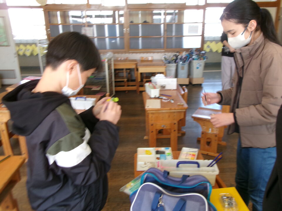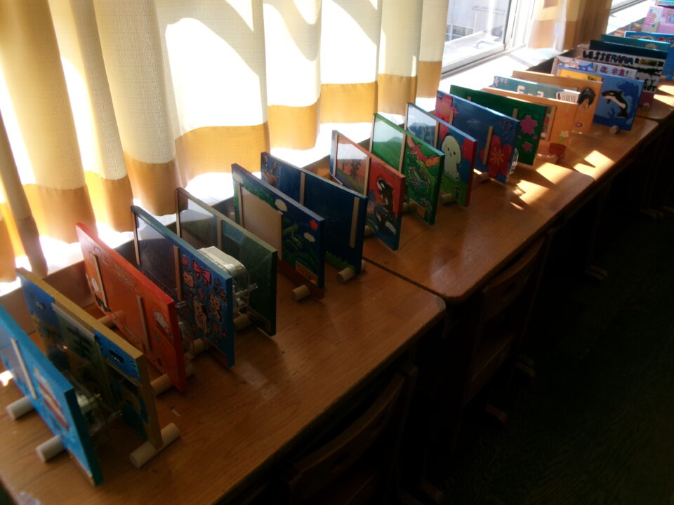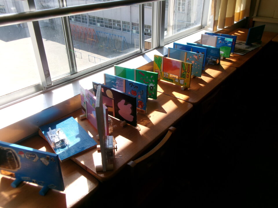 卒業記念作品は、フォトフレームを作っています。なんと、第四小学校校歌オルゴール付きです。そのほか、作品袋を作ったり、自分のやることを見つけてがんばったりしていました。