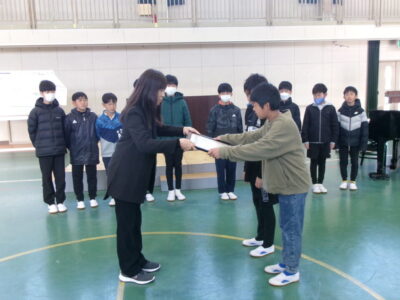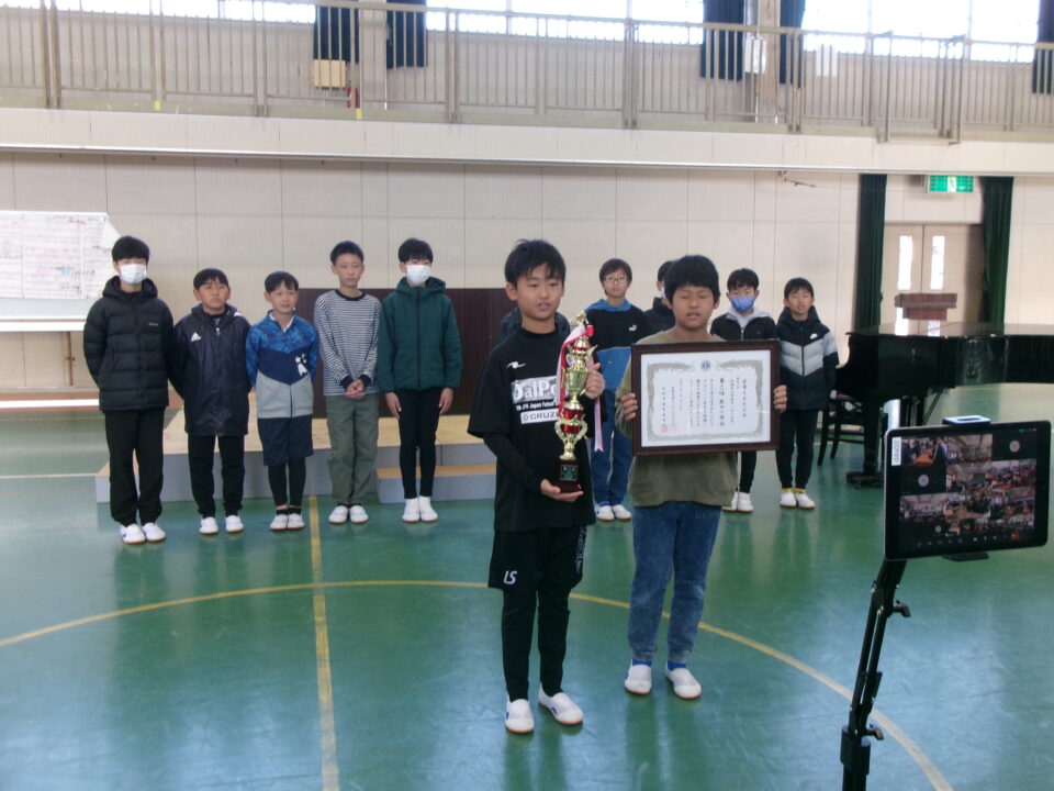 ホーム > 学校活動の様子 伝達表彰(でんたつひょうしょう)を行(おこな)いました。 1月(がつ)10日(とおか)(土(ど))、11日(にち)(日(にち))に行(おこな)われた『松阪市小学校(まつさかししょうがっこう)サッカー大会(たいかい)』において、3位(い)という素晴(すば)らしい成績(せいせき)を残(のこ)したサッカーチームの伝達表彰(でんたつひょうしょう)をTeamsで行(おこな)いました。 みなさんも応援(おうえん)や声(こえ)かけありがとうございました。 シェアする Twitter でシェア はてなブックマークに保存 LINE でシェア Facebook でシェア Pocket に保存 Feedly で購読 関連投稿 学校活動の様子 にっこり集会 学校活動の様子 九九(くく)の練習(れんしゅう)は、歌(うた)に合(あ)わせて(^^♪ 学校活動の様子 臨時休業のお知らせ 学校活動の様子 三重化学工業さんより 学校活動の様子 花菖蒲 学校活動の様子 着衣水泳(ちゃくいすいえい) 6年生(ねんせい) 前の投稿 探究学習発表会(たんきゅうがくしゅうはっぴょうかい)4年生(ねんせい)