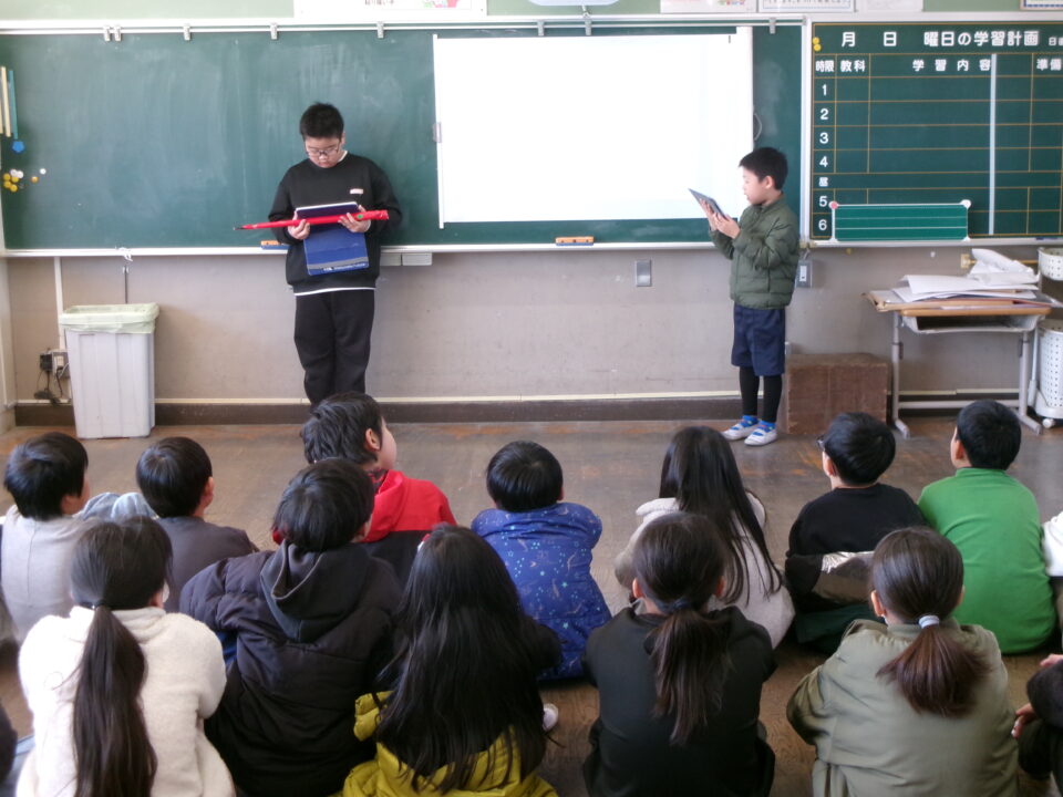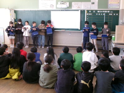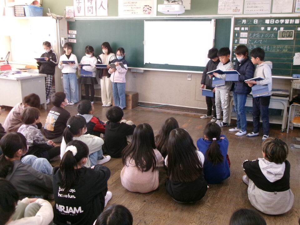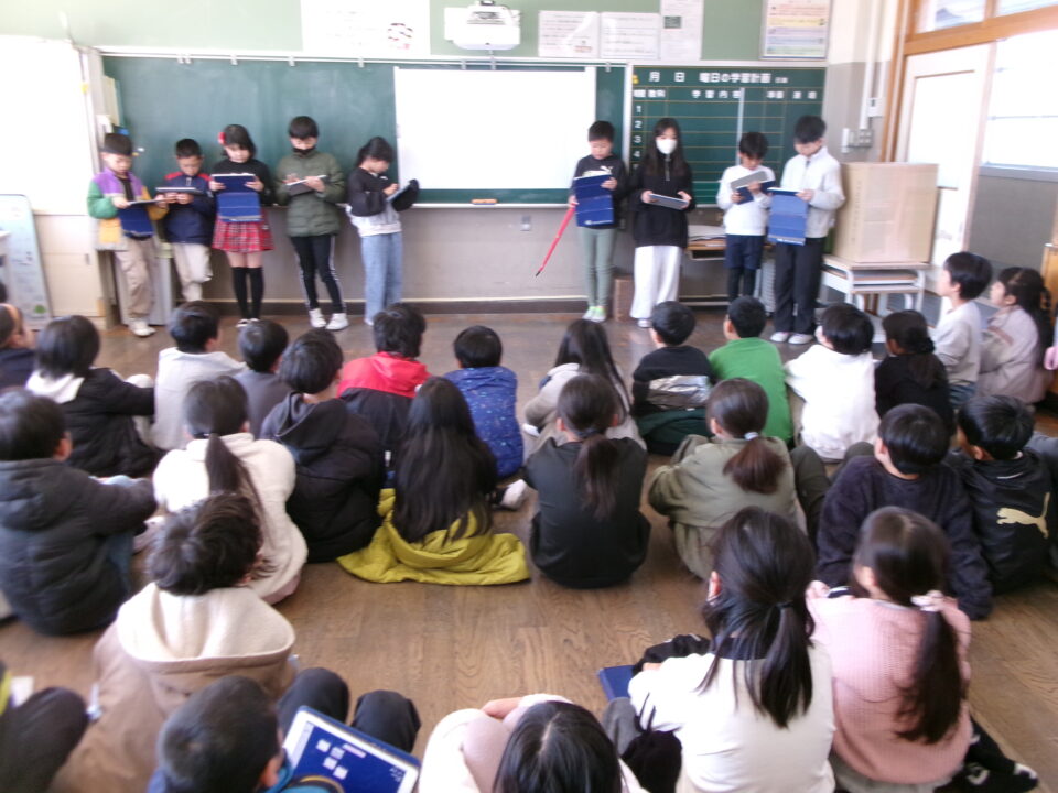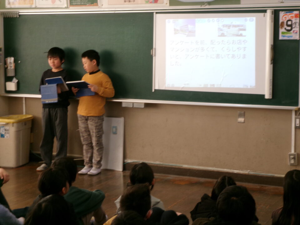住んでいる町を住みやすくするために市の職員の方に要望したことなどを発表し、4年生の子からは、よくできている、市の職員の方に話をしたのはすごいと感想を言ってもらいました。