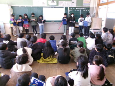 今日は、自分たちでこれまで調べてまとめたことを4年生の子たちにプレゼンを行いました。