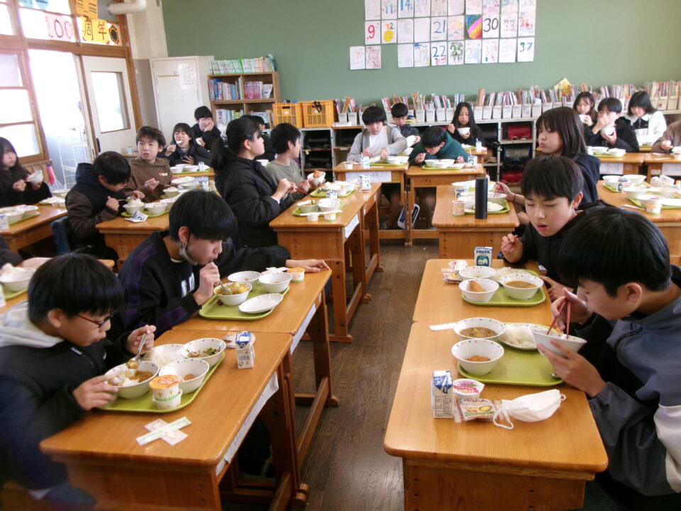 今日きょうは、6年生ねんせいだけに卒業そつぎょうのおいわいに給食きゅうしょく豪華ごうかになりました。