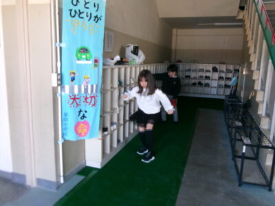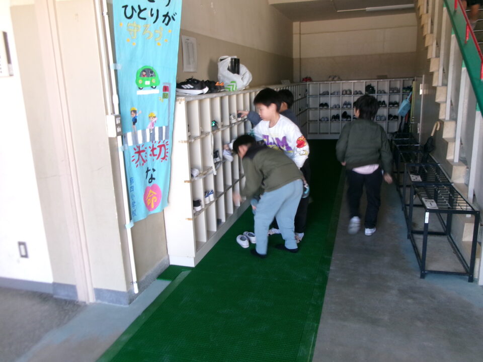第2昇降口に緑のマットを敷きました。