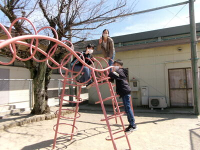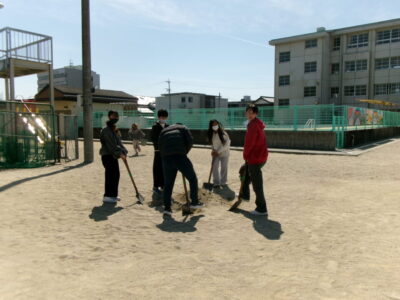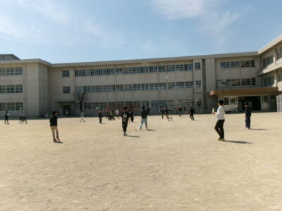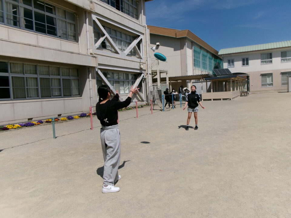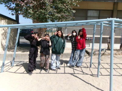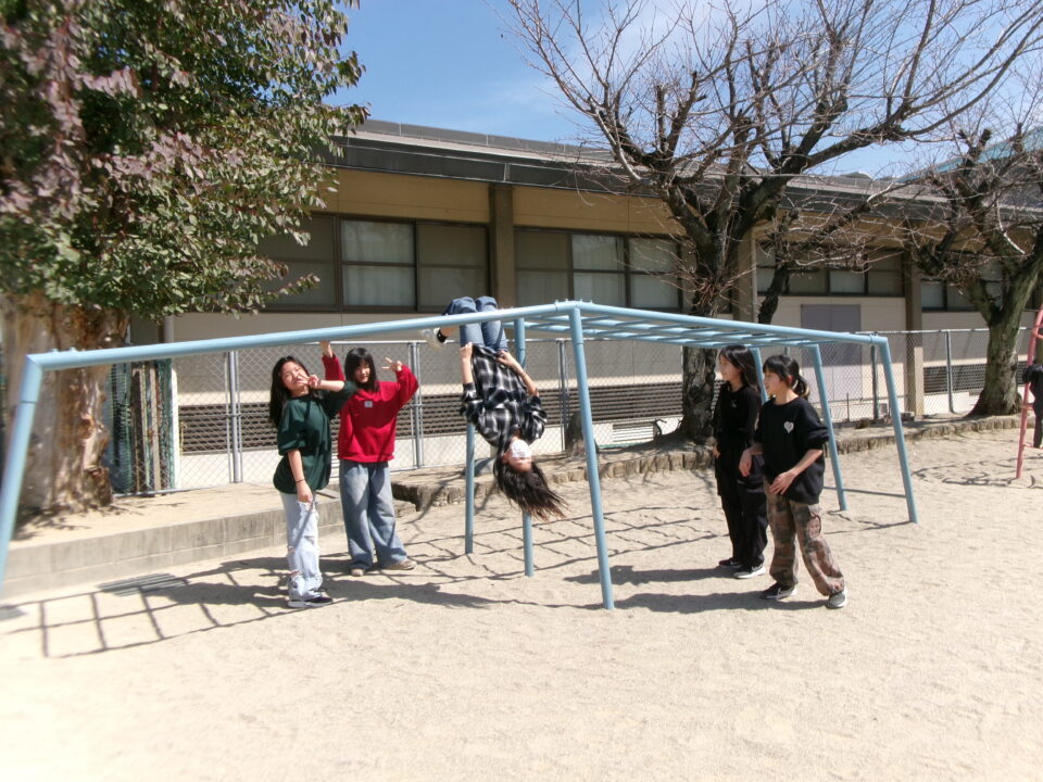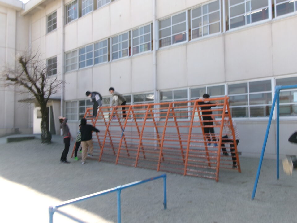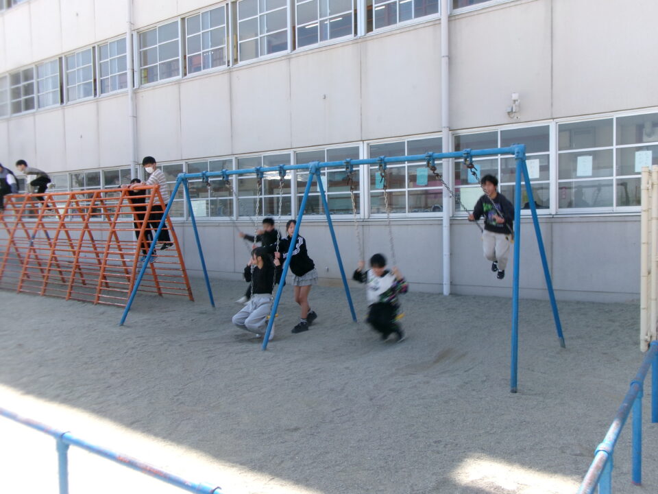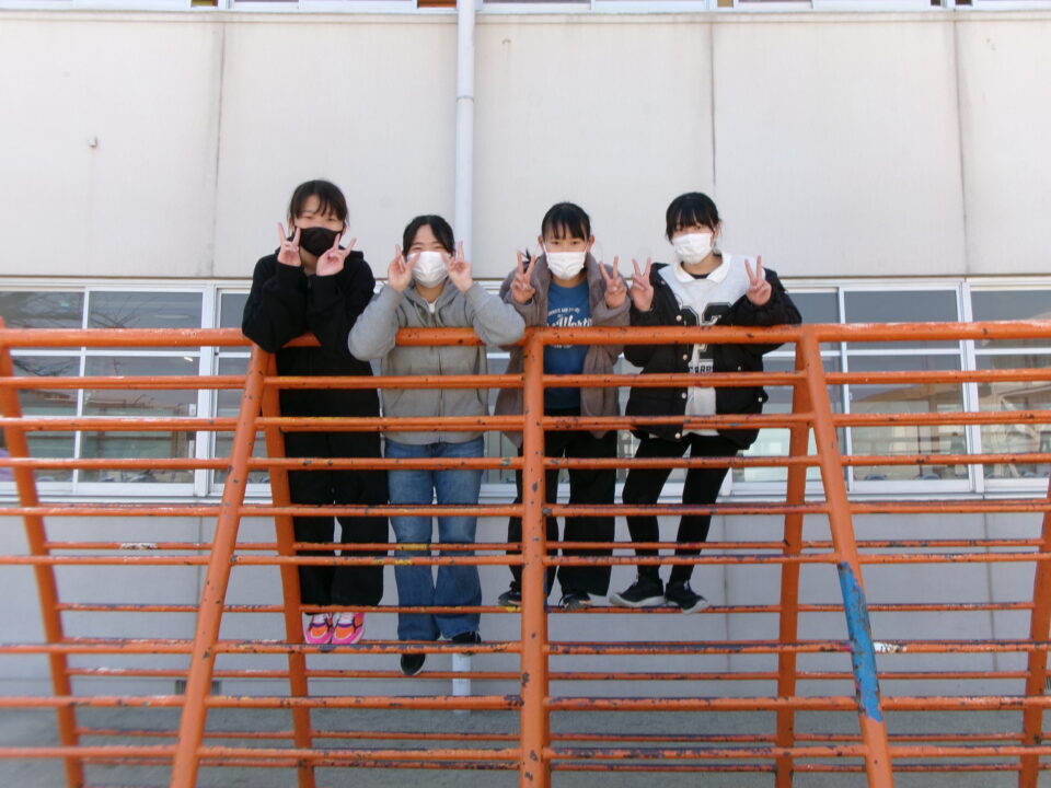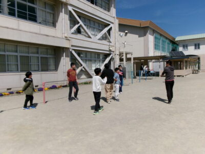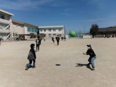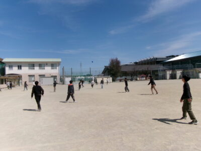 6年生は、いよいよ明日卒業です。今日は4限目にみんなで運動場へ出て、最後のレクを楽しみました。