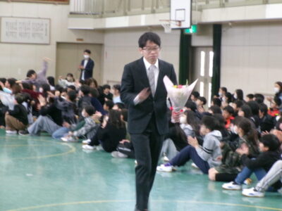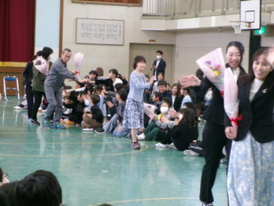 今年度3月で学校を去る先生たちの紹介がありました。これまでお世話になった先生たちが13人お別れになります。