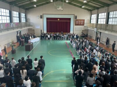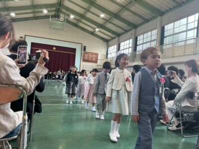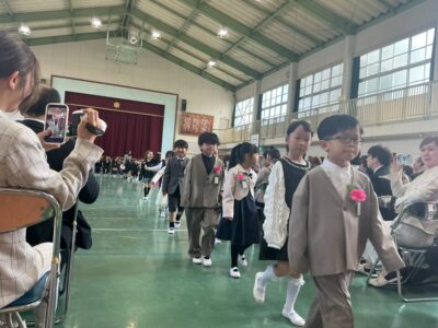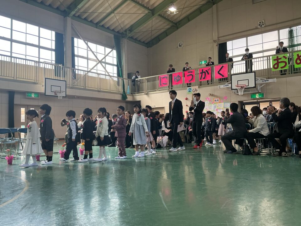 今日きょうは、1年生ねんせいたちの入学式にゅうがくしきおこないました。お天気てんきく、さくら満開まんかい笑顔えがお満開まんかい素晴すばらしい入学式にゅうがくしきでした。