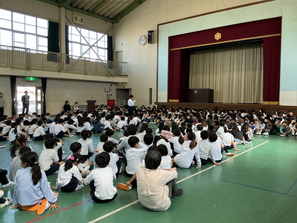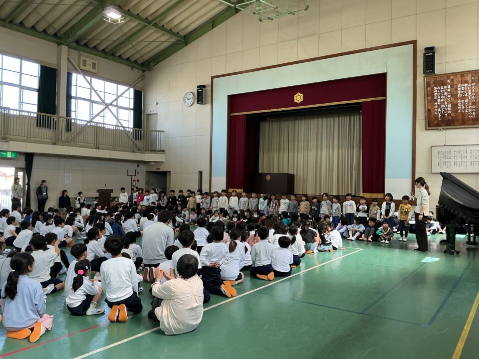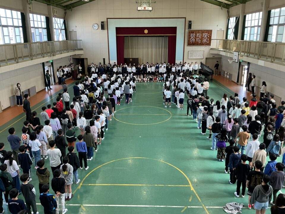 2年生ねんせいから6年生ねんせい新入生しんにゅうせい1年生ねんせい64にんとのはじめての対面たいめん するしきです。