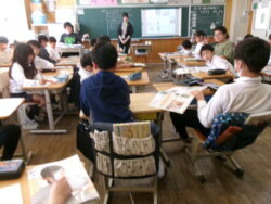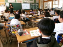 4年生どちらのクラスも落ち着いて学習しています。先生が質問をすると手を挙げて自分の考えを発表します。聞いている人はしっかりと聞いています。落ち着きと活気があります。