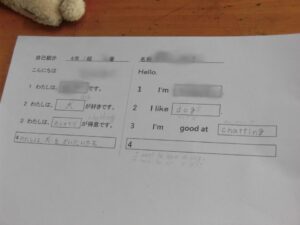 みんながんばってALTの先生に伝えていましたね。これを友だちにも英語でどんどん伝えてみようね!(^^)!