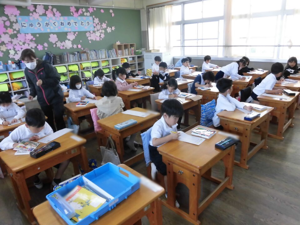 1年生の教室前廊下には、『ろうかを歩こう』表示がしてあります。