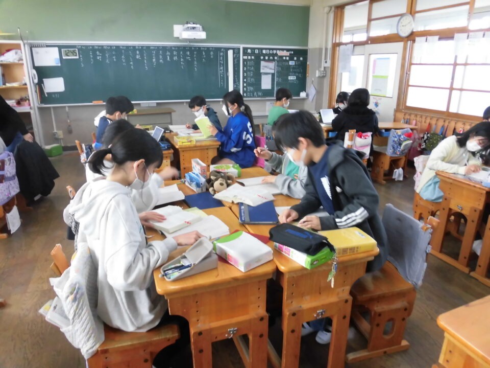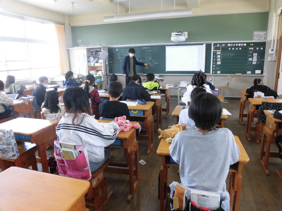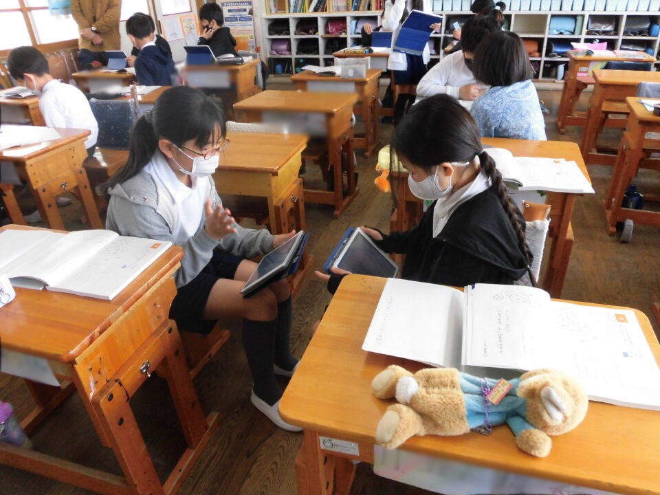 6年生では、社会、算数、国語をそれぞれ学習していました。学習道具としてタブレット端末も使い始めていますね。
