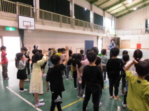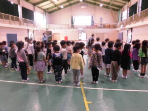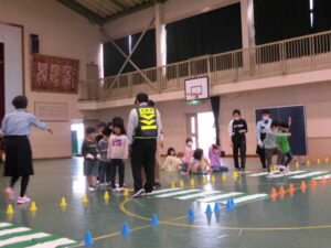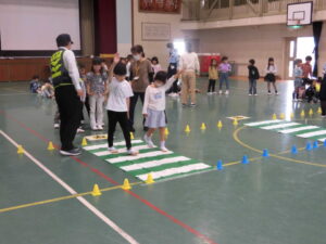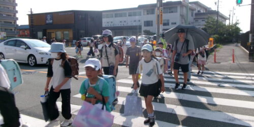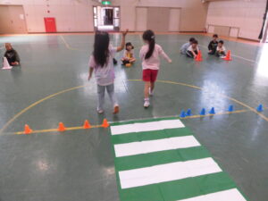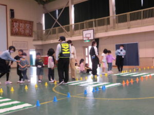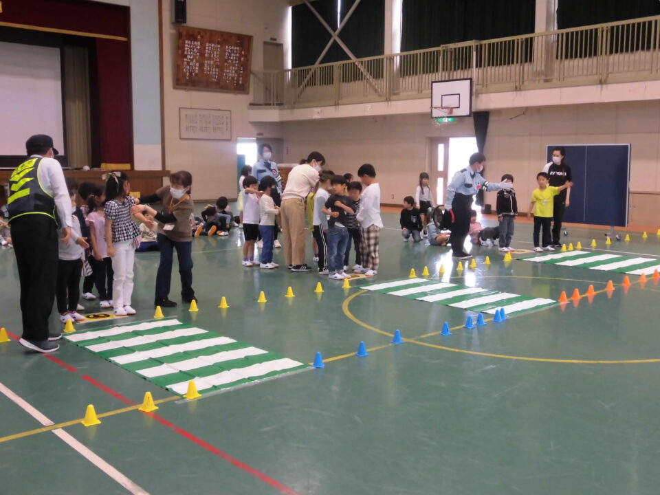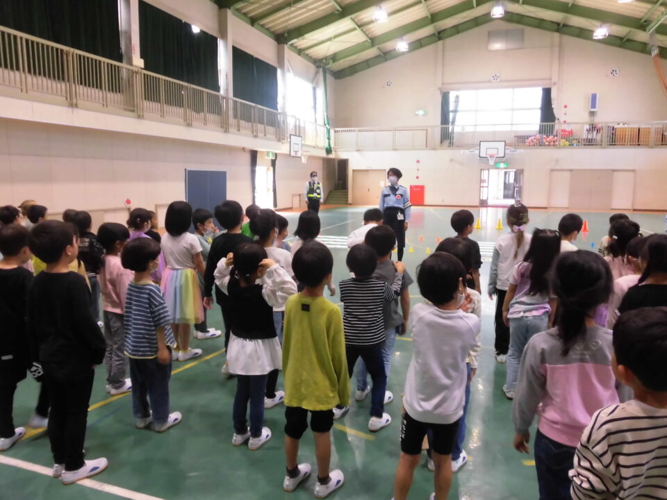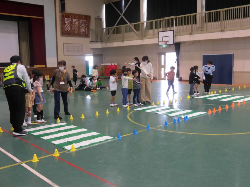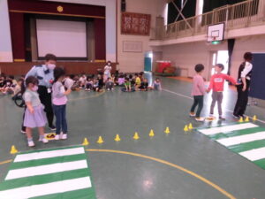 入学してまだ間がない1年生の子たち向けに交通安全教室を開きました。