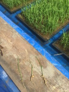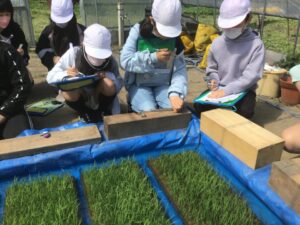 ホーム > 学校活動の様子 5年生(ねんせい) 苗(なえ)の観察(かんさつ) 5年生(ねんせい)は、先日(せんじつ)もみまきをして、もみから芽(め)が出(で)て苗(なえ)になりました。 9日(ここのか)の田植(たう)えに備(そな)えて苗(なえ)の観察(かんさつ)をしに行(い)きました。 もみから青々(あおあお)としっかりした苗(なえ)に生長(せいちょう)していますね。 シェアする Twitter でシェア はてなブックマークに保存 LINE でシェア Facebook でシェア Pocket に保存 Feedly で購読 関連投稿 学校活動の様子 1年生(ねんせい)の机(つくえ)と椅子(いす)が新(あたら)しくなります! 学校活動の様子 2年生 さつまいも 学校活動の様子 5年生米かし 学校活動の様子 / コミュニティ・スクール プール開(びら)きをしました(^^♪ 学校活動の様子 運動会(うんどうかい) ダンス・表現(ひょうげん)の練習(れんしゅう) 学校活動の様子 修学旅行(しゅうがくりょこう)1日目(にちめ)始(はじ)まりました(^^♪ 前の投稿 松阪市標準学力調査(まつさかしひょうじゅんがくりょくちょうさ)を行(おこな)いました。 次の投稿 今日(きょう)の給食(きゅうしょく)は、和食(わしょく)の日(ひ)