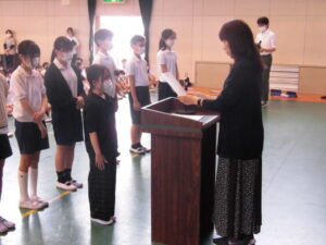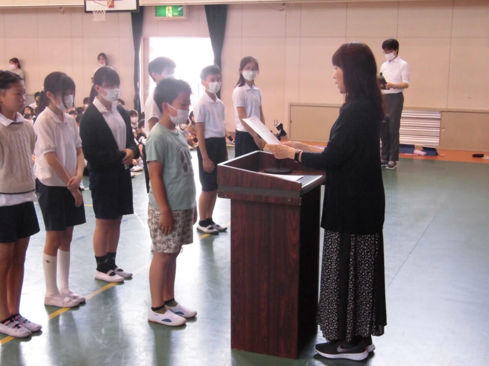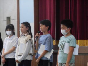 児童会役員の子たちは、認証の後、全校のみんなの前で堂々と立派に所信表明をしてくれました。