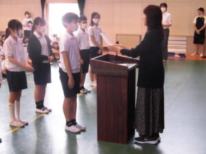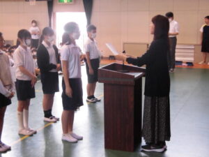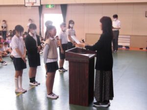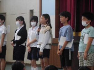 児童会役員の子たちは、認証の後、全校のみんなの前で堂々と立派に所信表明をしてくれました。