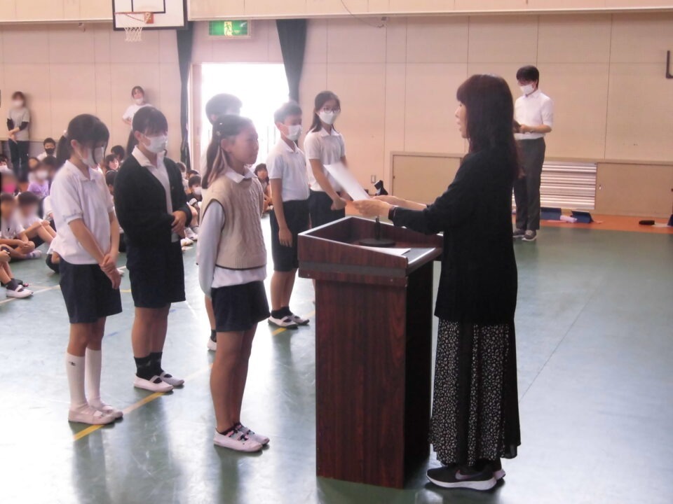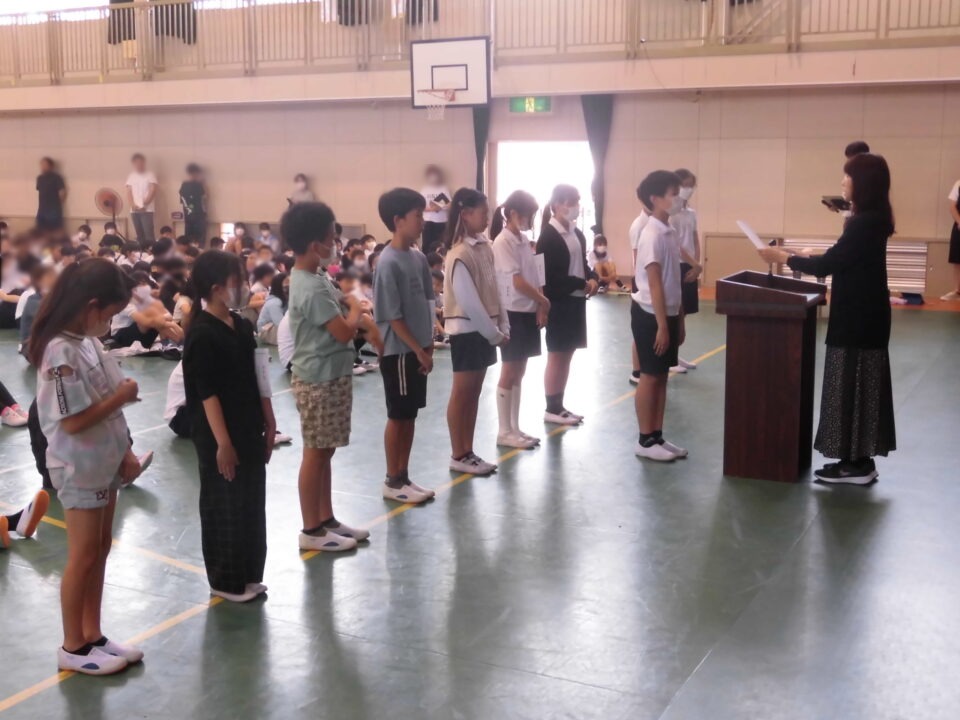 昨日、5限めのにっこり班出会いの会の前に「児童会役員認証式」がありました。