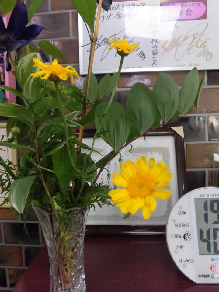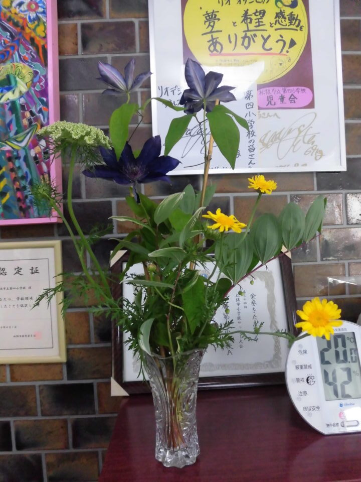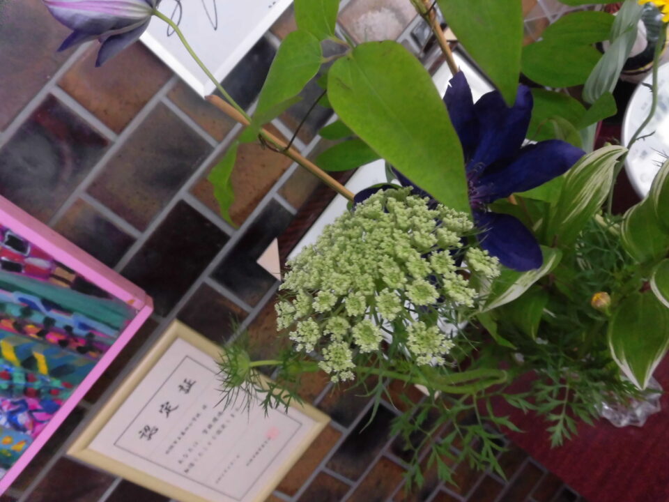 紫の花は、テッセン、黄色の花は、春菊、白い花はにんじんの花なんですよ(◎_◎;)