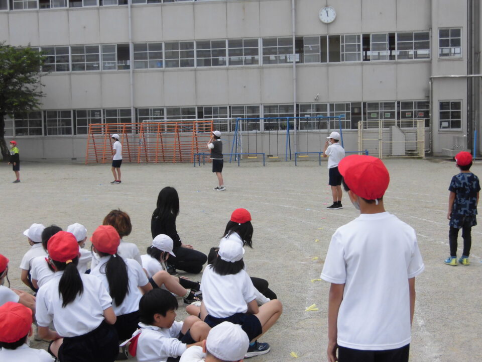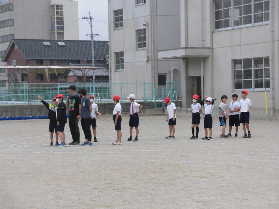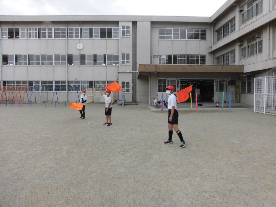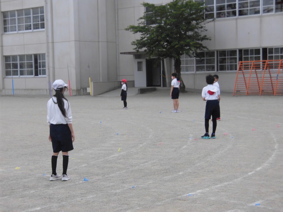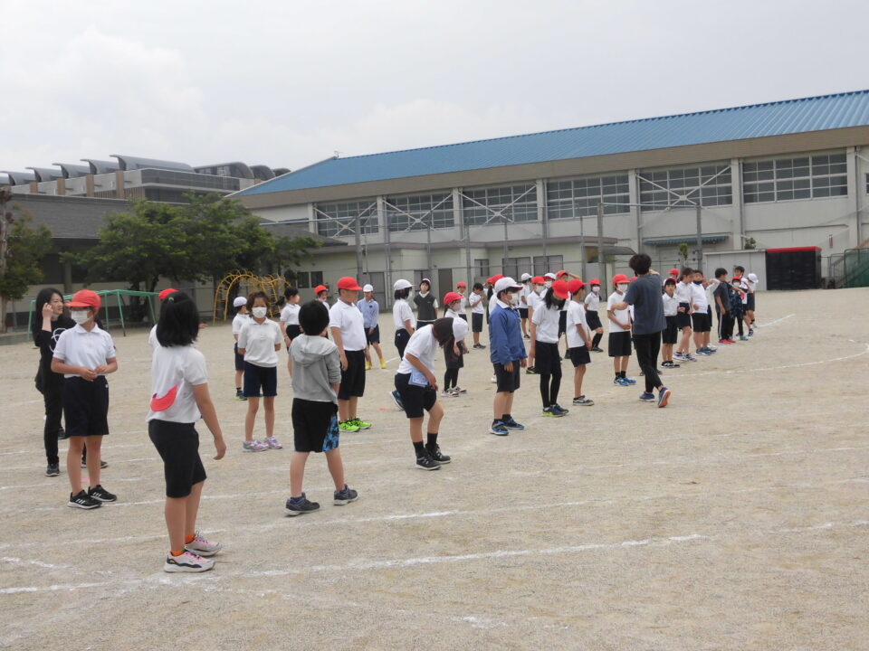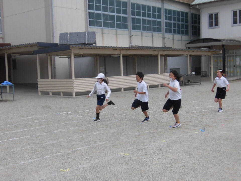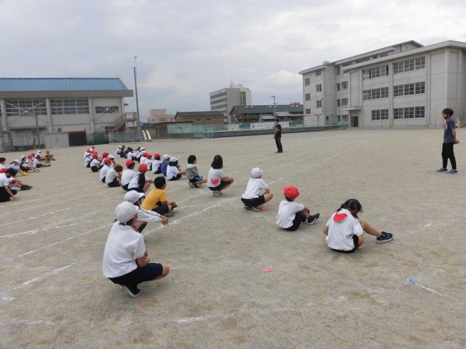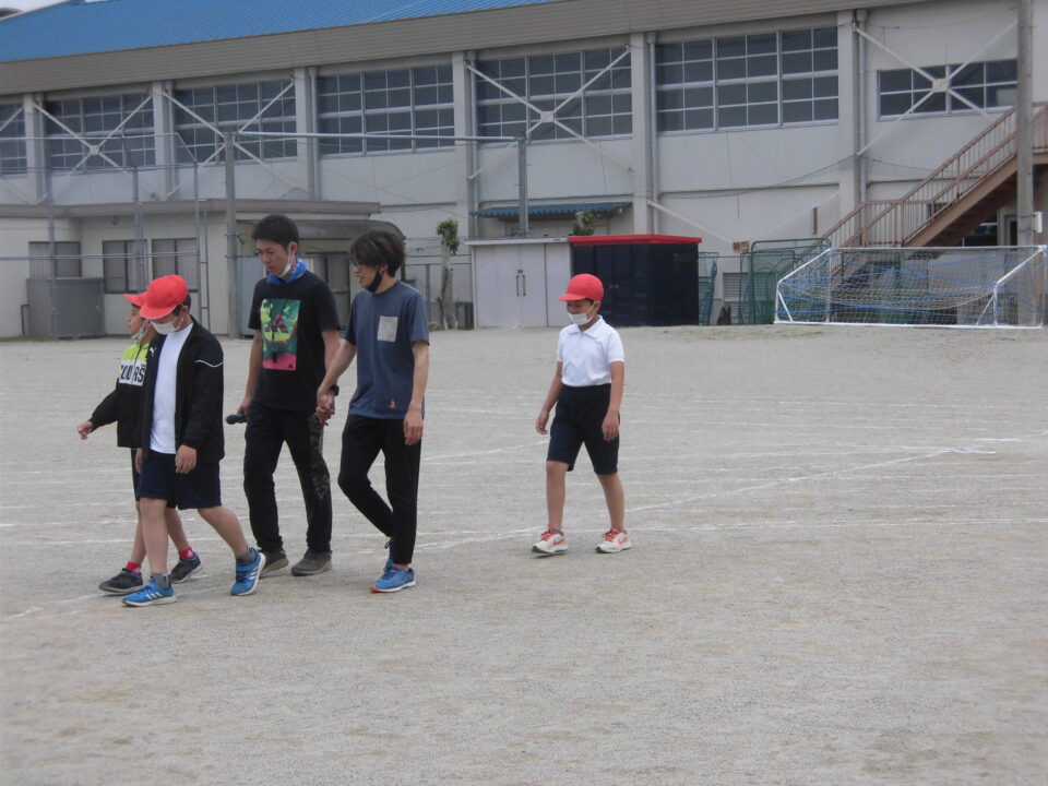 みんなしっかり真上に手を挙げて、返事ができていました。1グループ5人~6人で走ります。