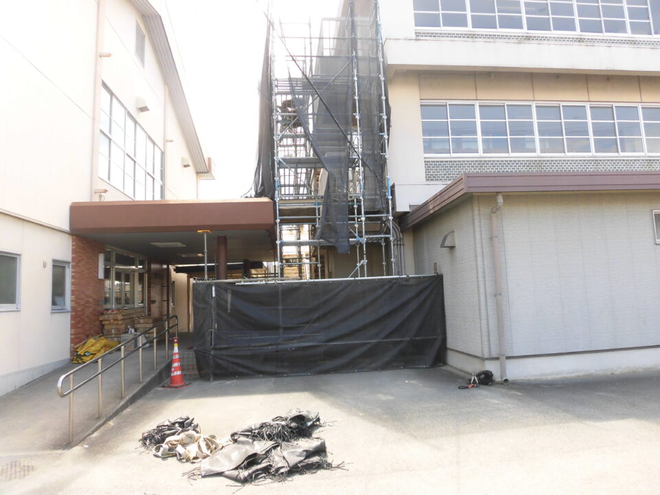 19日(土)から子どもたちは夏休みに入りましたので、老朽化が心配されていました『非常階段』を新しいものに付け替えます。8月中もしくは、若干9月初旬までかかるかもしれません。